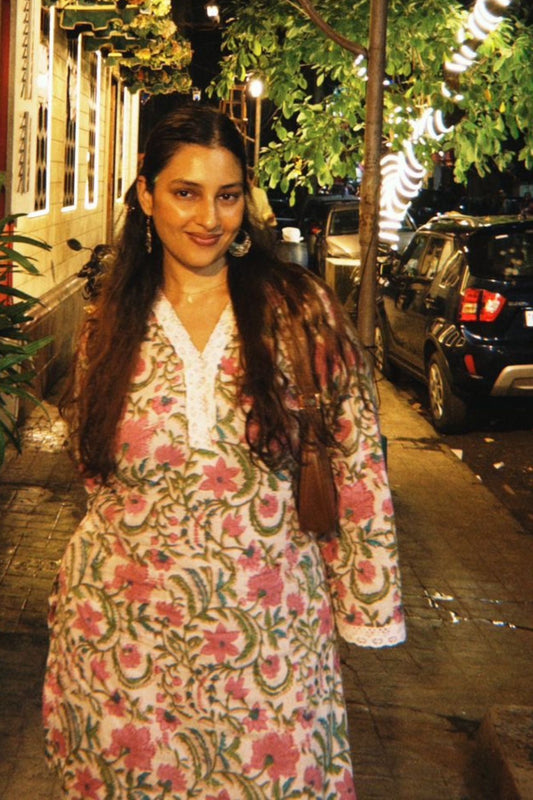Cotton Block Printed Straight Kurta with Embroidered Farshi Salwar Set-Customisable