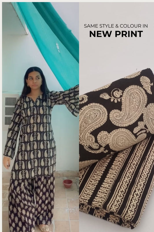 Cotton Paisley Pearl Straight Kurta Farshi Salwar Set-Black