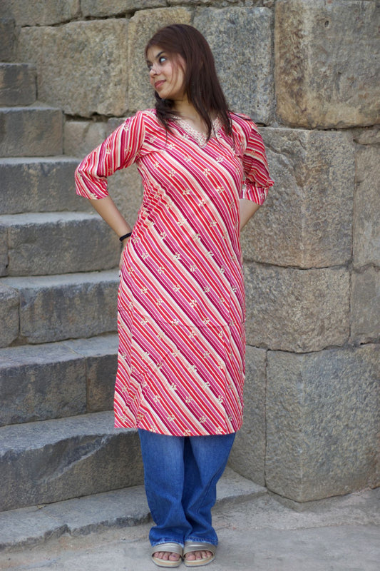 Rayon Jaipuri Print Straight Kurta With Gota Patti in Pink