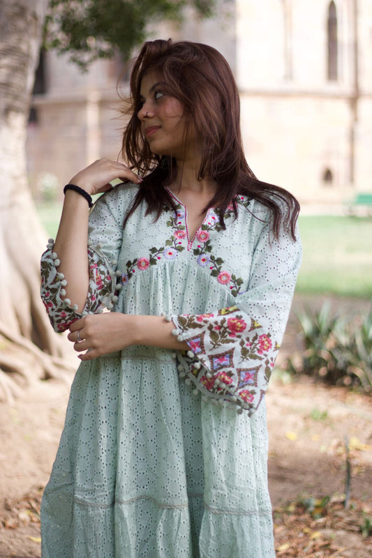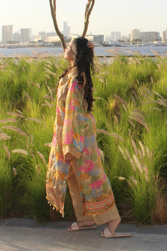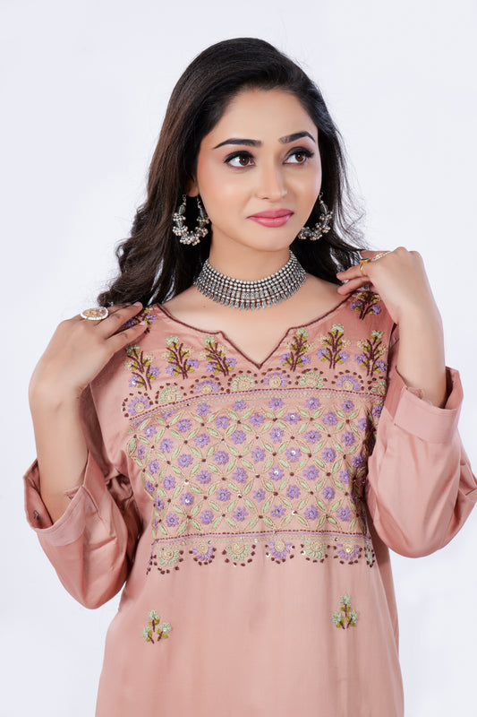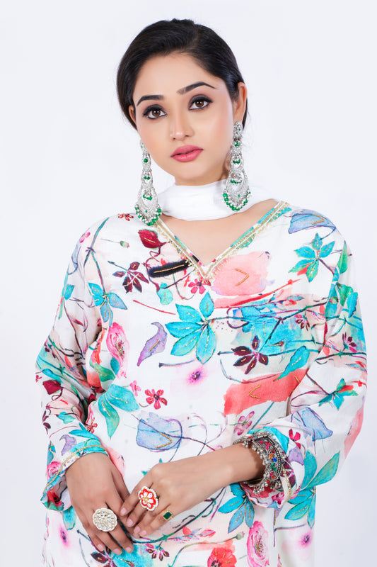 Pure Crepe Printed Pakistani Kurta Set With Embellishments