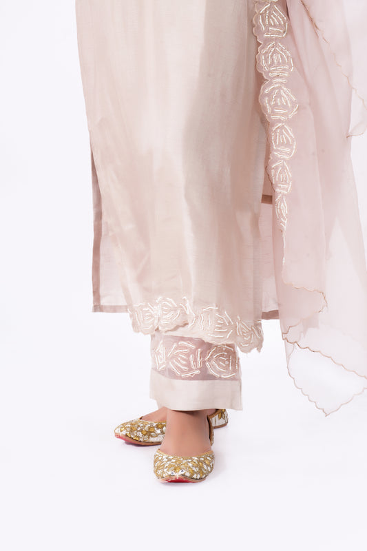 Light Brown Silk Straight Kurta Set With Organza Dupatta