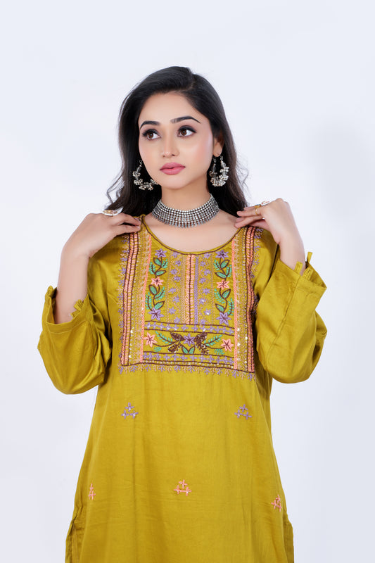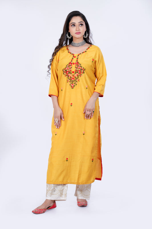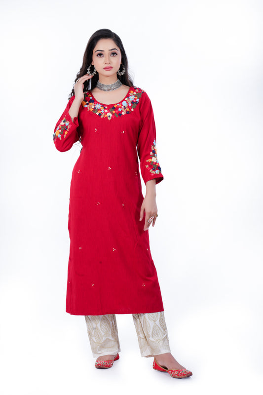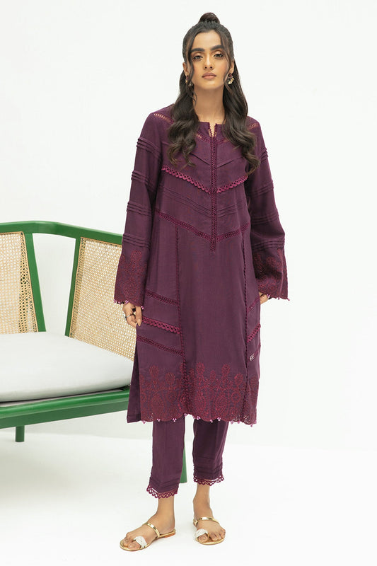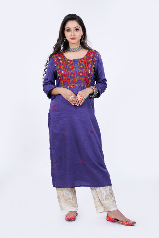 Purple Cotton Satin Hand Embroidered Straight Kurta